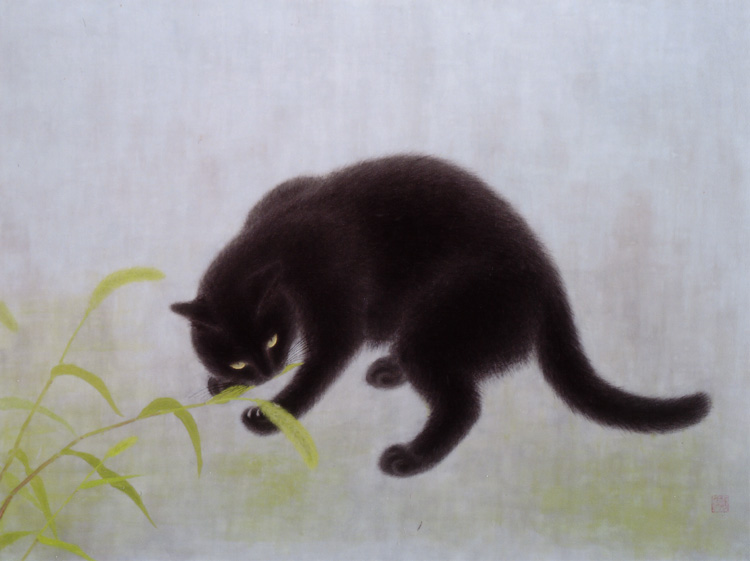 「このポーズ描きたいと思いながら、何年か過ぎて、猫じゃらしと共に。」