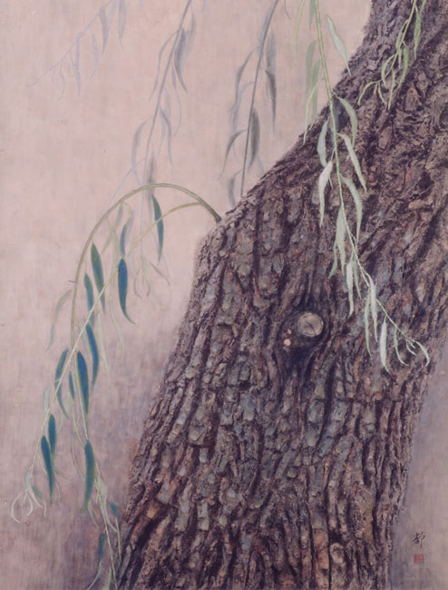 「こんなに幹のぼこぼこした柳見たことない、面白い、盛り上げて描いてみよう。」