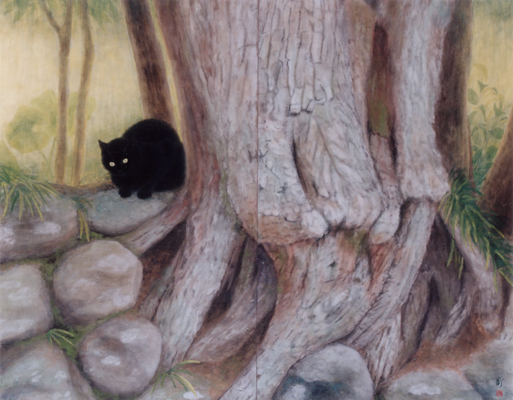 見た人のコメント:「この猫きっと夜にはこの会場を走り回っているよ」