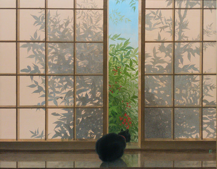 「座敷からいつも見ている南天の影、猫に協力してもらいました。」